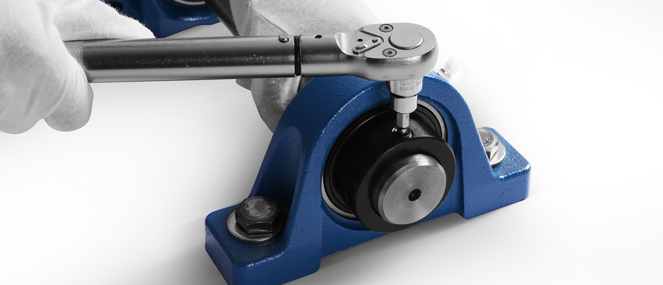 用扭矩扳手按規定的鎖緊扭矩將軸承座的安裝螺栓擰緊。